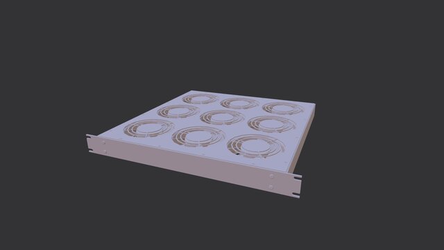A 1U rack-mounted 9-fan cooling chassis used for cooling high-powered rack-mounted audio/video equipment.