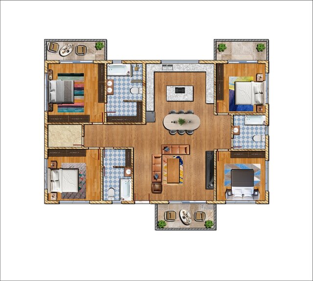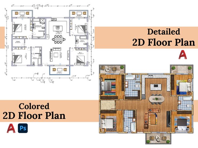 Designed a 2500 Sqft 4-Bedroom Apartment (2D Floor Plan) for a UK-based construction company with a budget of USD 750. The project featured a UK-style luxury layout emphasizing elegance, functionality, and modern comfort. The design included 10-foot walls, 6-foot windows and doors to enhance natural light and spaciousness. Spaces were organized with an open-plan living and dining area, a semi-open kitchen with utility, and four bedrooms, including a master suite with ensuite bath and walk-in closet. Executed using AutoCAD for the detailed 2D plan and Photoshop for the colored visualization, ensuring both technical accuracy and visual clarity. Deliverables included a PDF floor plan, source CAD file, and a high-resolution colored PNG plan. The entire project was completed and delivered within 3 days, achieving a refined balance of luxury design, detail, and efficiency that aligned with UK residential standards.