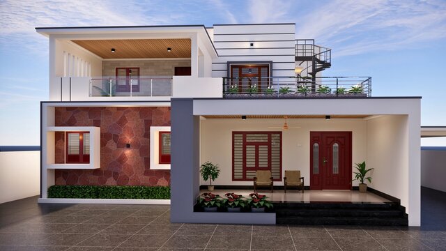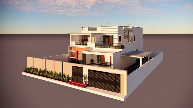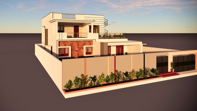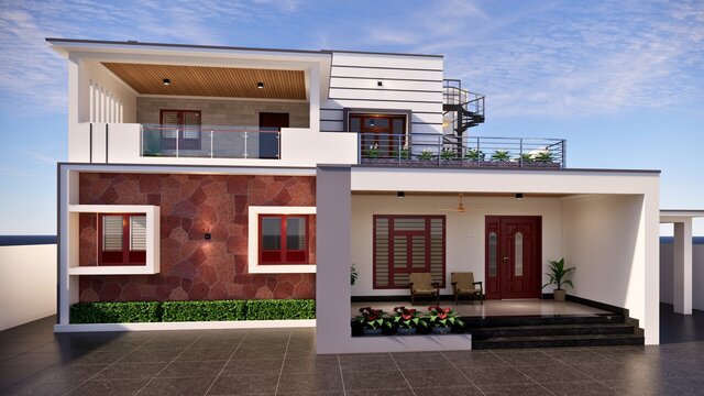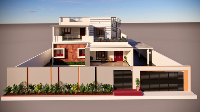 This project includes designing a modern front elevation for a residential building based on the architectural floor plan.