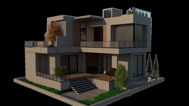 A modern 3BHK villa designed with clean lines, warm textures, and balanced proportions. The minimalist façade combines neutral tones with wood accents, large windows, and open terraces for natural light and ventilation. Green elements and simple detailing create a refined, elegant exterior that blends comfort with contemporary design.