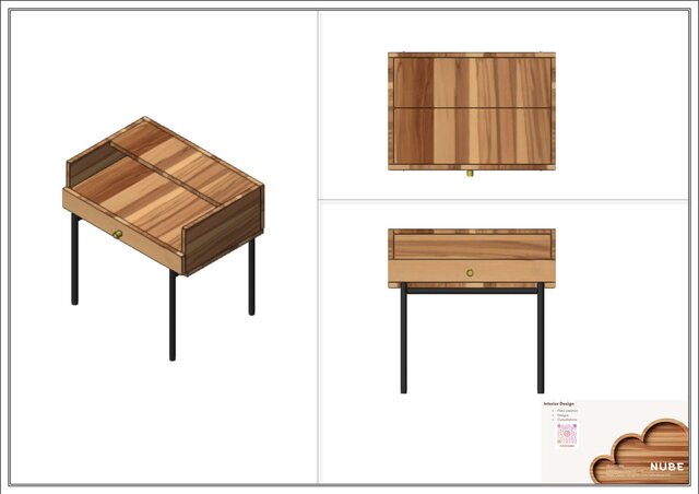 3d Night table wooden made with metallic black legs