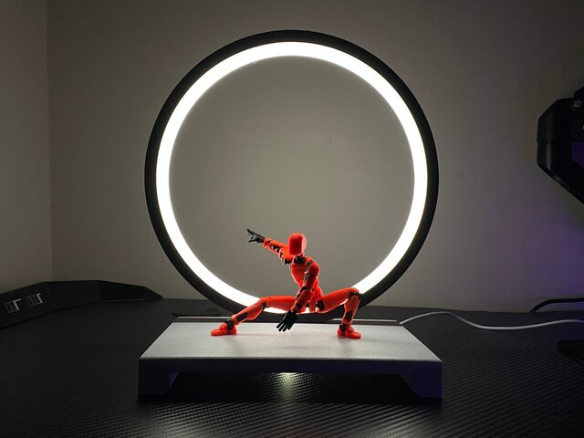 This project is a 3D-printable LED ring display, designed as a compact desk or display light with a clean, modern aesthetic.