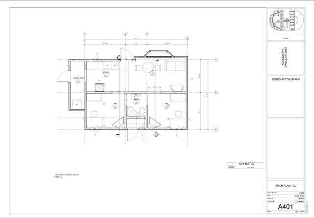 Original design. Fully functional ADU with 2 bedrooms, 1 bathroom, living room, kitchen, and laundry room.