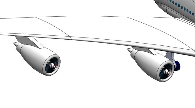 In a study based on the Airbus A380, I developed the external geometry of the aircraft using advanced surface modeling techniques. Throughout the process, I focused on critical areas such as fuselage form, wing–body transitions, engine integration regions, and aerodynamic line continuity, creating a smooth and parametric surface structure.