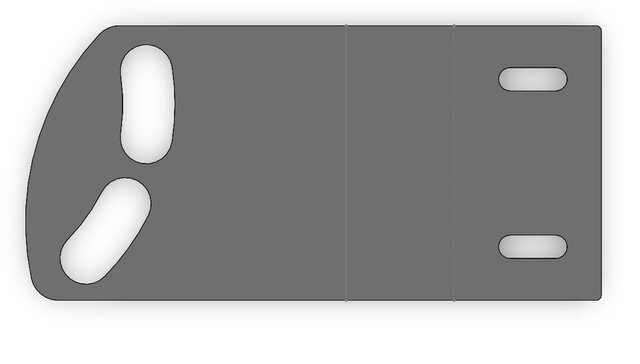 A precision sheet metal offset bracket designed for adjustable mounting applications. This model demonstrates advanced sketch geometry using radial and angular constraints to define slot paths.Technical Highlights:Radial Slot Geometry: Features two curved slots placed on an $80$ mm construction arc, allowing for $36.50^\circ$ of rotational adjustment.Dual-Bend Offset: Managed with specific bend deductions to maintain a total horizontal length of $210$ mm across multiple planes.Production Ready: Includes edge fillets ($R10$) to prevent sharp corners and is optimized for CNC laser or plasma cutting.