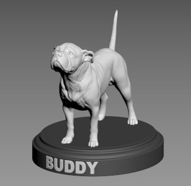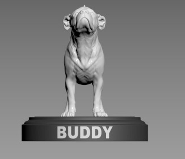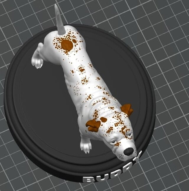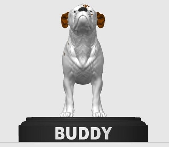 The model was sculpted and modeled in Blender, with the name BUDDY integrated directly into the custom display base. Color was applied using Bambu Lab multi-color 3D printing, capturing his unique white coat and brown markings with stunning accuracy. The final model is fully optimized for 3D printing.