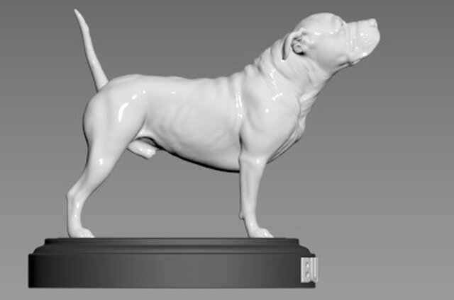 This is Buddy — a photorealistic 3D sculpt of a client's beloved dog, created as a lasting memorial to be 3D printed and displayed on her desk.