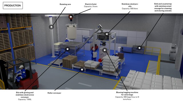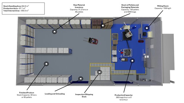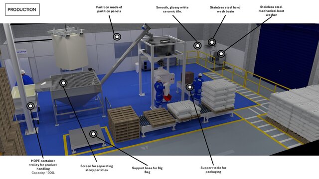A compact and high-efficiency layout study was developed for an animal feed ingredient fractionation plant, ensuring full compliance with sanitary and safety standards for handling feed-grade materials.