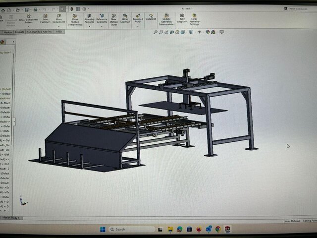 This project presents a 3D mechanical assembly of an automated conveyor handling system designed for industrial material transfer and processing. The system includes a conveyor mechanism, structural support frame, feeding section, and a top-mounted automated handling unit.