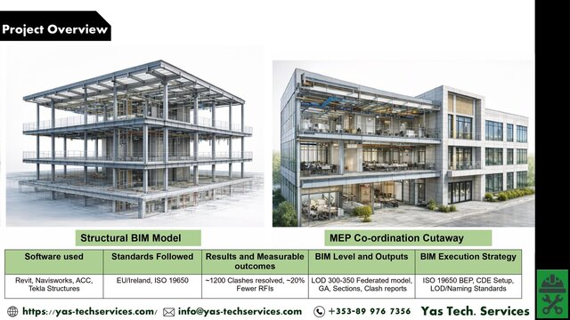 • We established an ISO 19650–compliant BIM execution framework, including BEP, CDE setup, and clear modelling standards