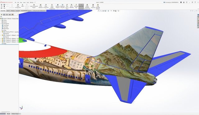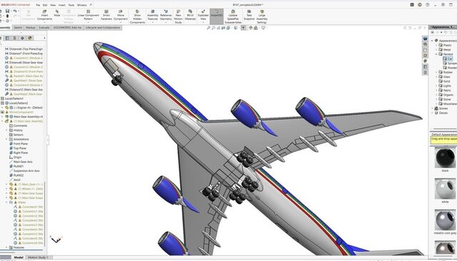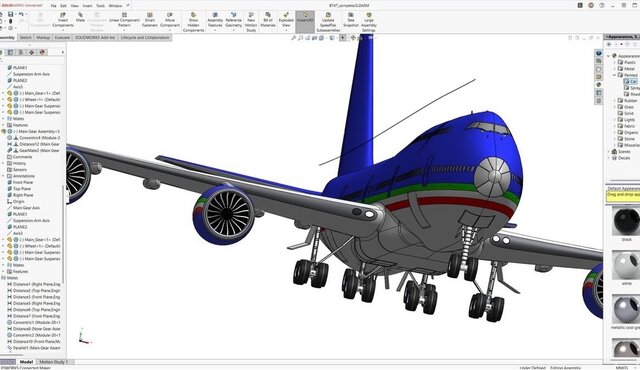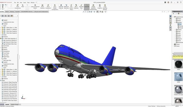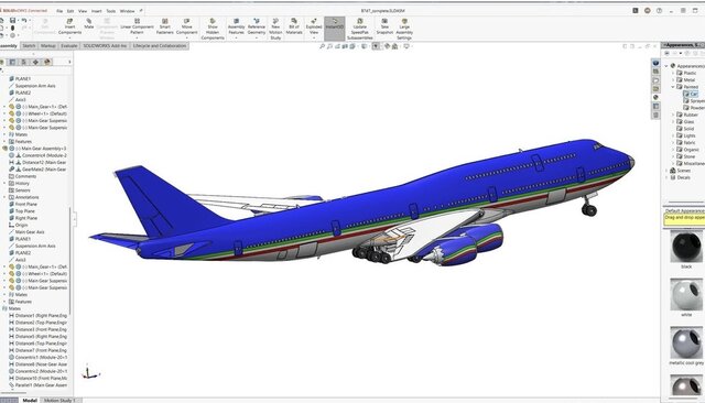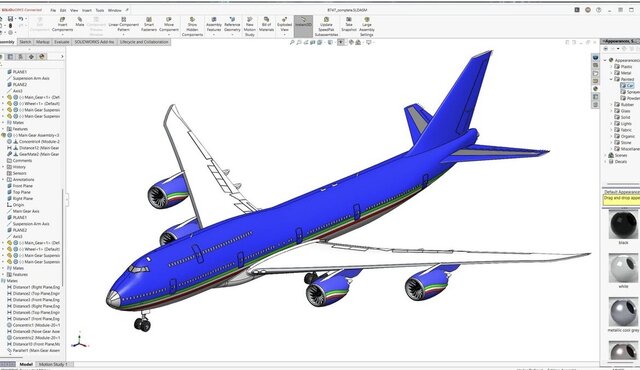 In this project, a complete 3D model of the Boeing 747 aircraft was designed using SolidWorks software.
