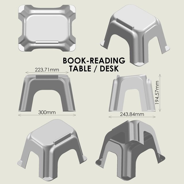 3D printable Table for book reading. Top face has a 5-degree slope and a stopper at end to prevent the book from slipping.