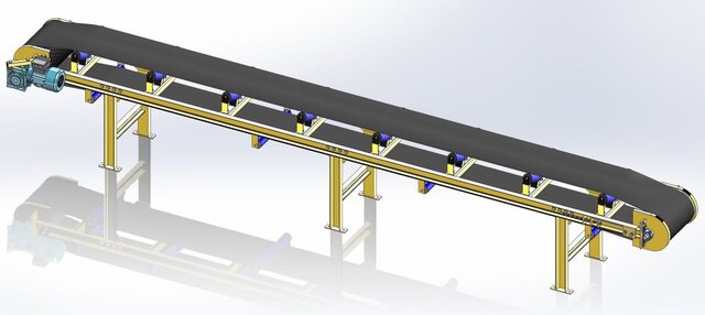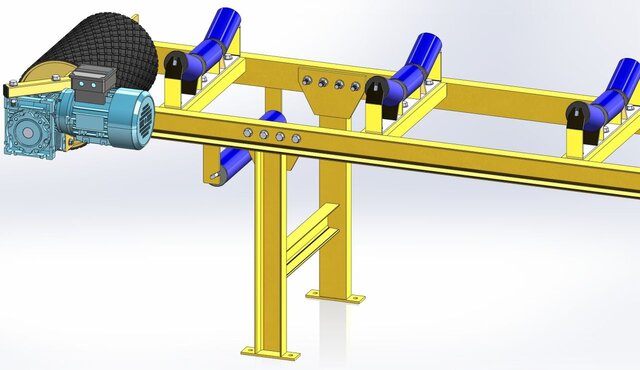 Creation of a detailed 3D model of a conveyor belt system using SolidWorks. The project includes design of parts and components, preparation of manufacturing drawings and CAD files for production.