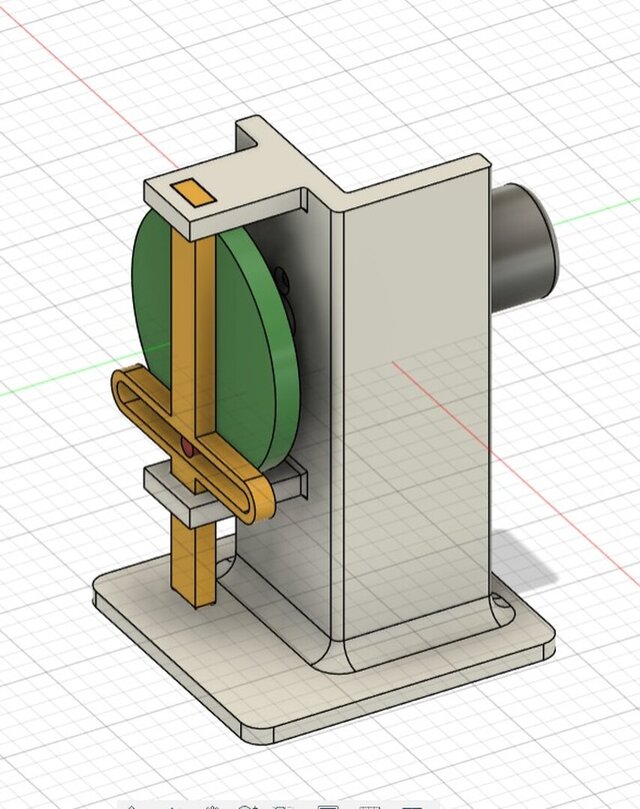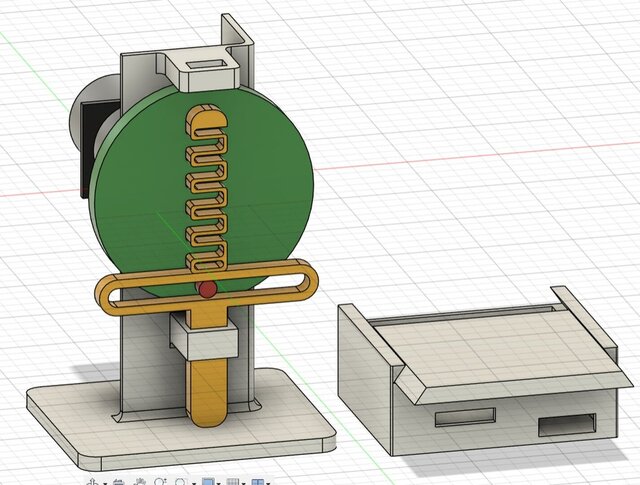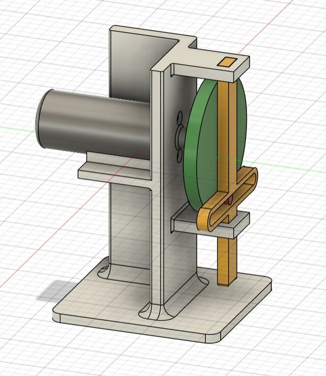 A compact, cam-driven mechanism designed to repeatedly press a push button automatically for testing, demos, and automation tasks. A motor rotates a cam disk with a guided follower path, converting rotary motion into a controlled linear press stroke. The rigid frame keeps alignment stable, while the front actuator and sliding linkage deliver consistent contact on the button. Includes a separate button/part tray enclosure for mounting or positioning the target component.