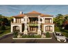 3D conceptual renders for a rustic mansion with classical elements. The development features natural stone and white facades to match its environment