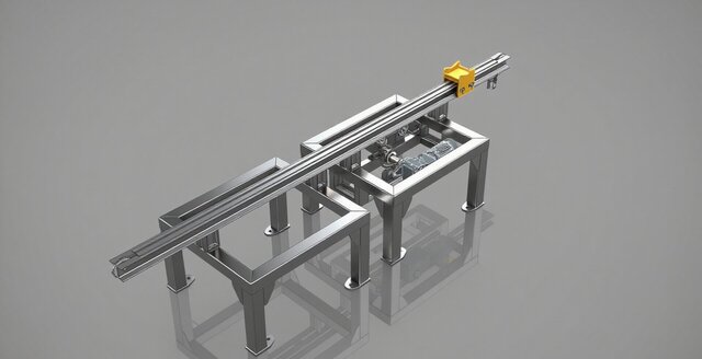Designed for long-distance and high-load linear motion tasks, this system features a chain-driven mechanism for robust and reliable performance. The steel frame, motor-coupling assembly, and precision rail structure make it ideal for CNC, automation, and robotic applications. The rendered model showcases production-ready detailing.
