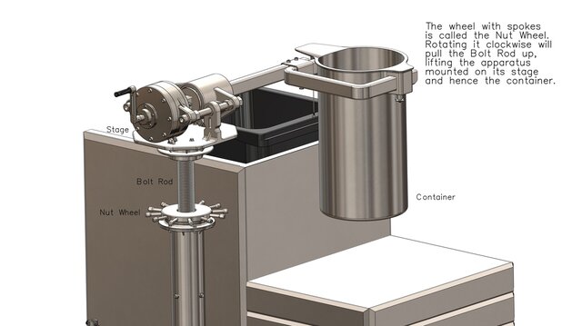 • For lifting the container up and down, I utilized the concept of a jack-screw mechanism, modified to the project requirements.