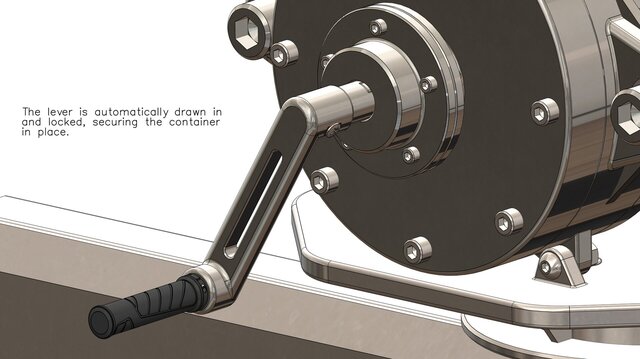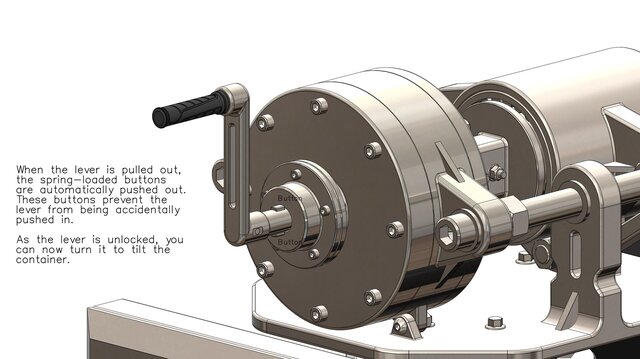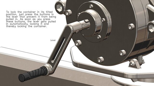 • I have also designed a mechanism that allows you to lock the container safely at any position when rotated/tilted in any direction.