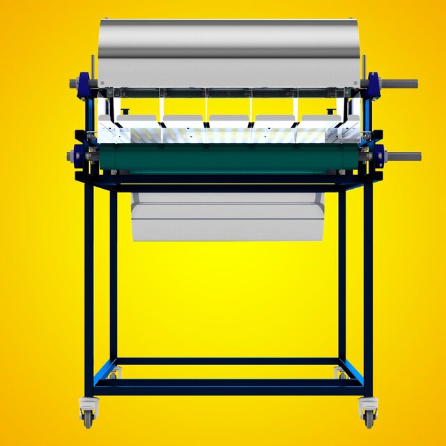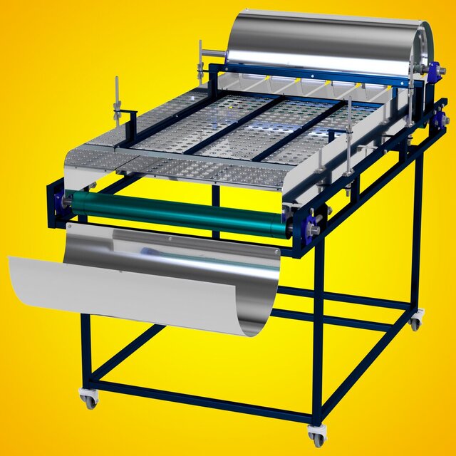 Cotton Candy Rolling and Cutting Machine, developed using the Skeleton Design methodology in Autodesk Inventor. This approach utilizes multiple base sketches distributed across different planes within a master part file, serving as the foundational geometry for all components and sub-assemblies throughout the model. Additionally, iLogic was implemented to generate configurable variables and a dialog box with customization options. The machine features a robust mobile frame on casters, perforated work surface for optimal material handling, precision rollers for controlled rolling operations, and automated cutting mechanisms. The stainless steel components ensure hygiene and durability for food-grade applications. This specialized equipment streamlines cotton candy production by automating the rolling and portioning process, making it ideal for commercial settings like amusement parks, fairs, and concession stands. The parametric workflow ensures design consistency, facilitates modifications, and enables efficient customization for various production requirements and operational speeds.