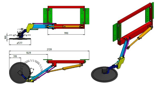 The project focused on designing a hydraulic motor–driven lawnmower that could be attached to various types of front loaders, as requested by FF-Agro Hungary Ltd. The mower was required to operate under low-clearance areas, navigate around obstacles, and effectively cut grass in orchards and vineyards. The work included analyzing existing machine structures and operational areas, defining design requirements, developing and evaluating concepts, and performing mechanical and kinematic calculations to produce a 3D assembly model and technical drawings. The objective was to prepare the groundwork for FF-Agro’s future product development, concentrating specifically on the mower’s supporting and moving structure.