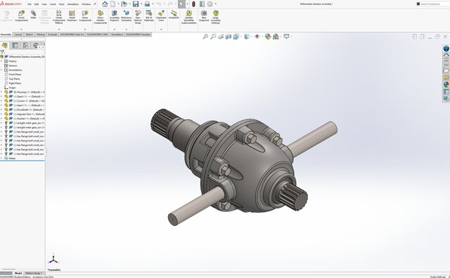 This project involved the complete design and modeling of a fully assembled differential gearbox using SolidWorks, developed from scratch with manufacturing considerations in mind.