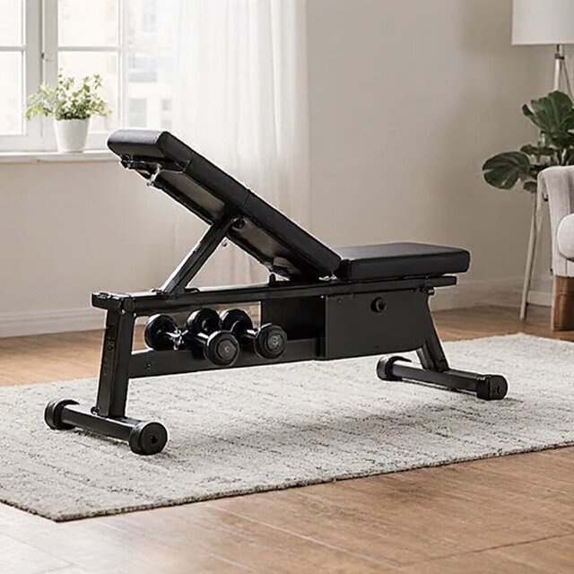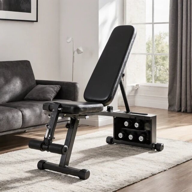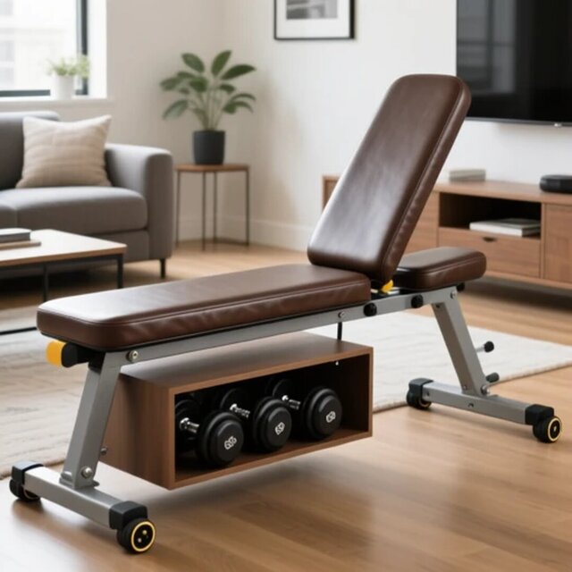 The many designs are with different types of storage and different colors of leather. The storage units are basically embedded into the bottom of the workout bench.