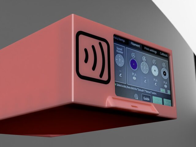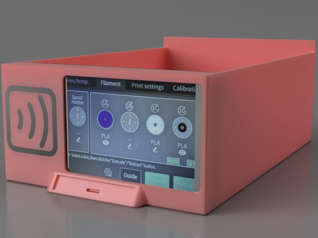 Designed this drawer for Bamboo lab 3D printer, it includes RFID scanner housing, and screen mounting points. Carefully designed this to hold the electronic equipment safely, and also created cable routing points for cable management.
