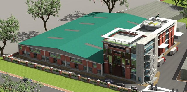 The facility is designed to optimize space for textile processing and efficient goods storage, along with supporting infrastructure for staff circulation, ventilation, and material flow.