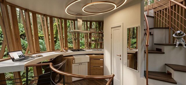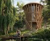 A sustainable wooden observation tower designed for the Danube Delta, blending seamlessly with nature. Built from local timber, its organic form minimizes environmental impact while offering panoramic views of wetlands and wildlife. Elevated construction preserves the ecosystem, while open slats provide natural light and ventilation. A small dock and stone pathway create a entry experience. Ideal for eco-tourism, birdwatching, and nature retreats.