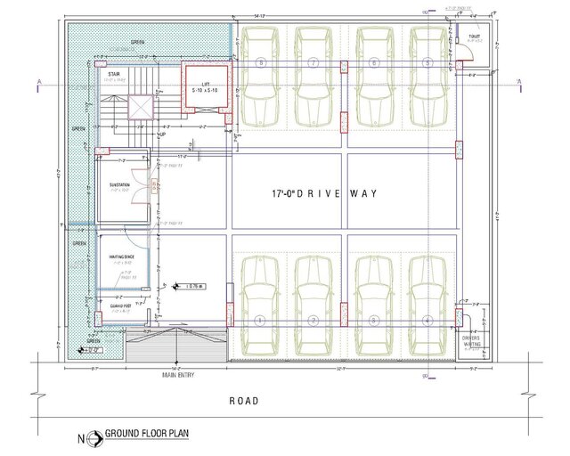 This project features a 7-storey residential apartment with a stylish front elevation and a functional floor plan designed for modern living.