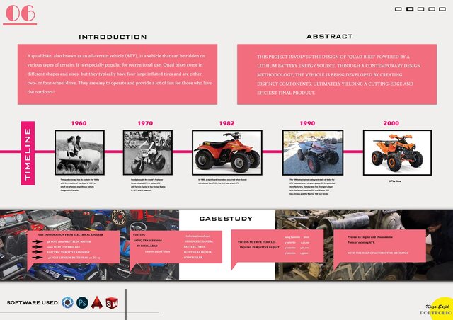 This project involves the design of a quad bike powered by a lithium battery energy source. Through a contemporary design methodology, the vehicle is being developed by creating distinct components, ultimately yielding a cutting-edge and efficient final product.