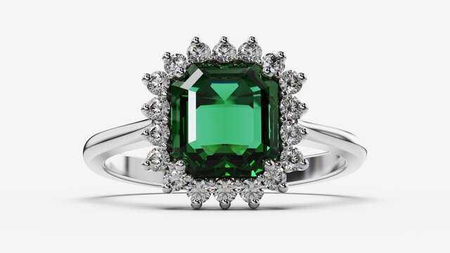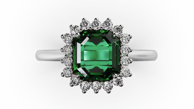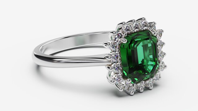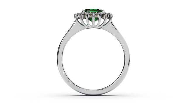 Designed in Rhino + MatrixGold with production feasibility in mind: prong angles, halo diamond seat tolerances, and shank proportions optimized for castable resin 3D printing.