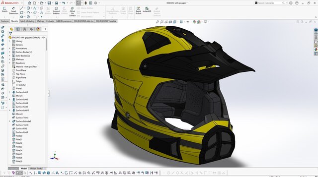 This is a high-performance Enduro/Downhill MTB helmet concept designed with a focus on aggressive angular surfacing and optimized airflow. The model explores the intersection of protective volume and aerodynamic sculpting, featuring a modular-look visor and integrated ventilation channels.