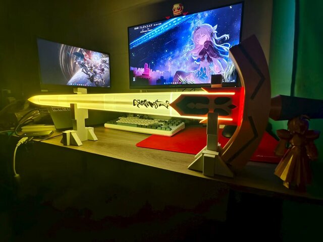 Saber’s iconic holy sword, precision 3D modeled for LED & sound integration.Key skills demonstrated: • High-detail PBR modeling & accurate engraving • Smart 22-part split for FDM (220 mm bed) • Hollowed blade with LED/wiring channels • Clean manifold topology, pre-supported, assembly-ready • Functional mounts for sound module & vibration motor Professional modeling + print-optimized segmentation for flawless cosplay props.
