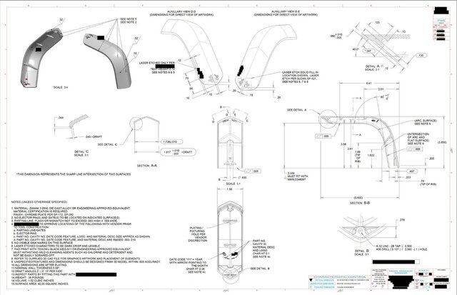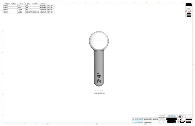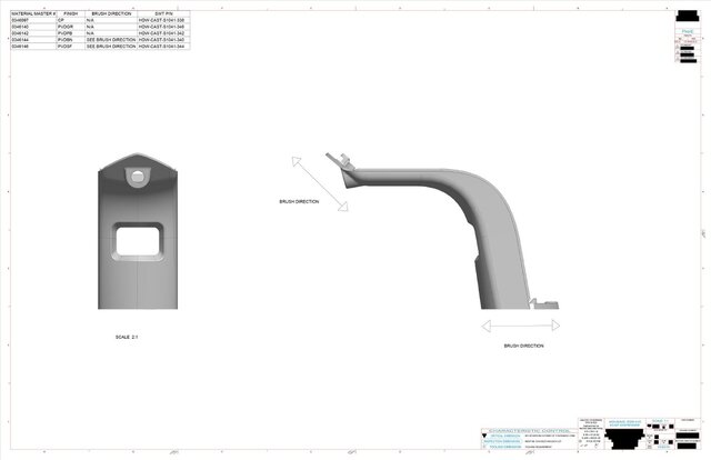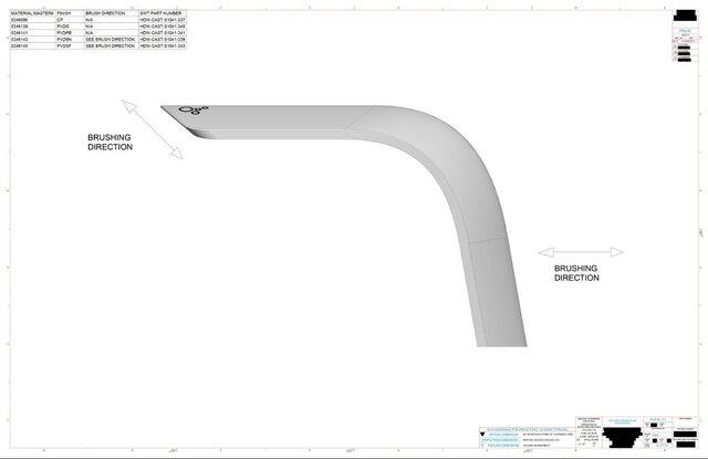 Die-casted faucet model and drawing with various finishes.
