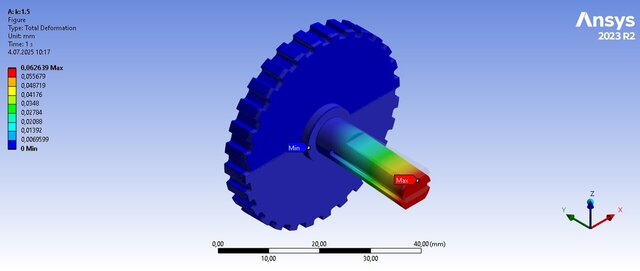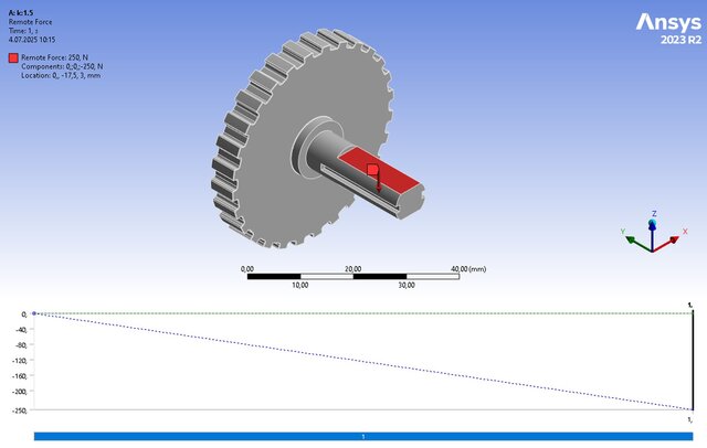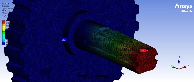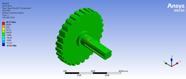I performed a detailed Finite Element Analysis (FEA) on a custom aluminum part (pin and cog) subjected to a remote force. The assembly was prepared in Fusion 360 and imported into ANSYS Workbench for analysis. The model was meshed, boundary conditions were applied, and deformation and shear stress distributions were obtained. The study demonstrated the maximum deformation of 0.062 mm and shear stress distribution up to 46 MPa under a 250 N force, confirming the design integrity of the part within safe limits. The work also included creating a full CAD assembly with brass bushings and louver housing.