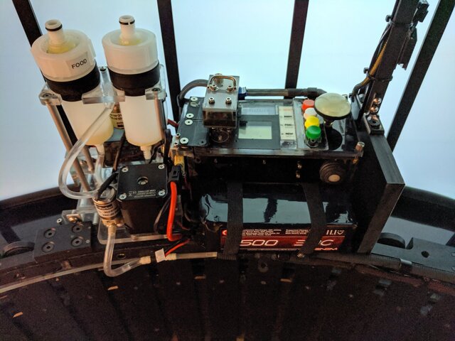 - **Power and switching:** 11.1 V LiPo battery (3S, ~6400 mAh class); Omron G3SD-Z01P-PD-US solid-state relay for solenoid activation
