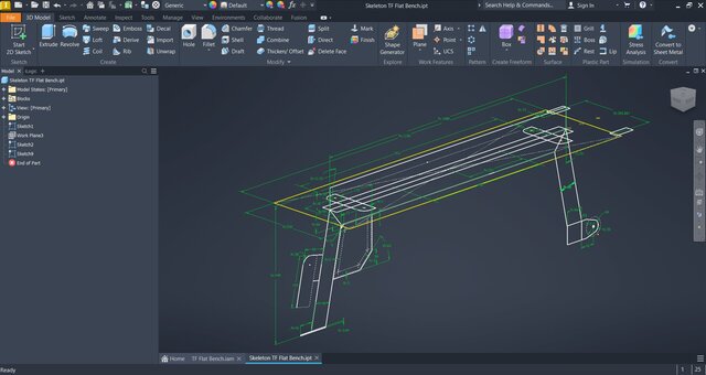 The Flat Bench is a fundamental strength training equipment piece, developed using the Skeleton Design methodology in Autodesk Inventor. This approach utilizes multiple base sketches distributed across different planes within a master part file, serving as the foundational geometry for all components and sub-assemblies throughout the model. Designed with a flat, padded surface and robust frame, this bench provides a stable platform for bench presses, dumbbell exercises, and various free weight movements targeting chest, shoulders, and triceps. The parametric workflow ensures design consistency, facilitates modifications, and maintains precise relationships between all structural elements. Features include reinforced support brackets with custom branding plates, integrated handle for mobility, and transport wheels. Its versatile design makes it essential for both home and commercial gym settings, offering durability and stability for proper exercise form and technique during weightlifting routines.