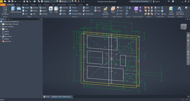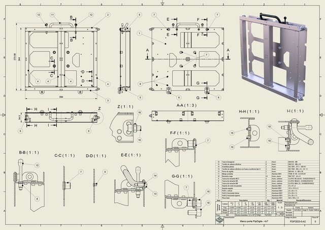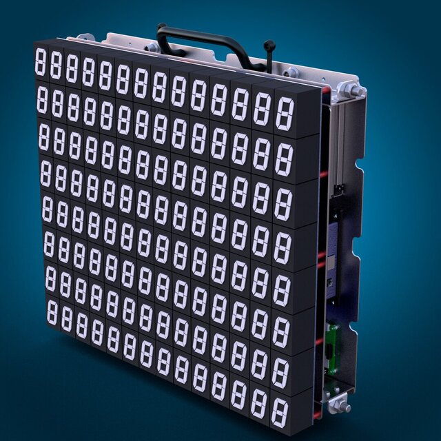 The FlipDigits Frame is a modular support structure designed to facilitate the arrangement and control of individual flip-digits cells for creating dynamic display systems. Developed using the Skeleton Design methodology in Autodesk Inventor, this approach utilizes multiple base sketches distributed across different planes within a master part file, serving as the foundational geometry for all components and sub-assemblies throughout both models. The robust metal frame features precision mounting points, integrated handles for portability, and structural reinforcements to support either high-density dot matrices or larger digit displays. The parametric workflow ensures design consistency, facilitates modifications, and maintains precise relationships between all structural elements. These versatile frames enable the creation of scalable information display systems ideal for transportation hubs, stadiums, industrial facilities, and public spaces where reliable, eye-catching visual communication is essential.