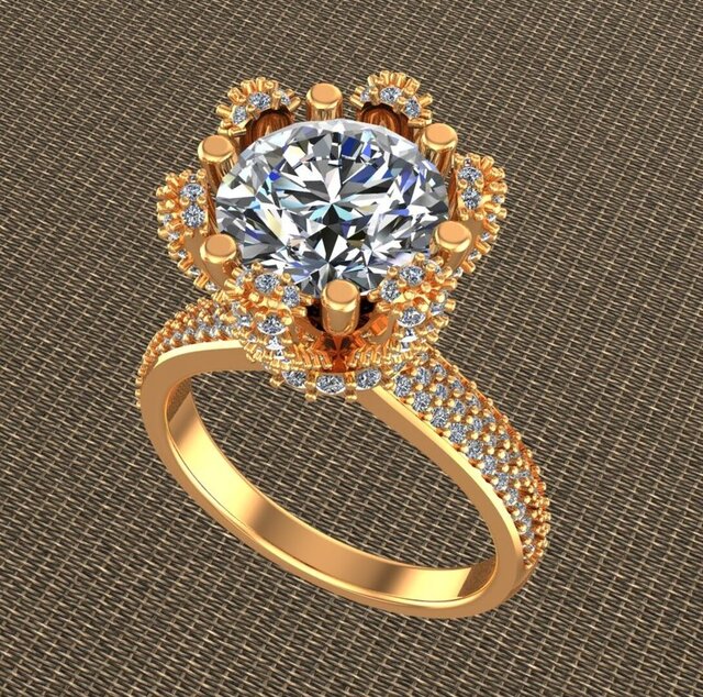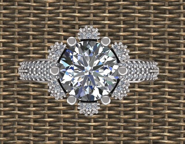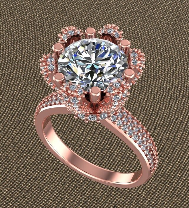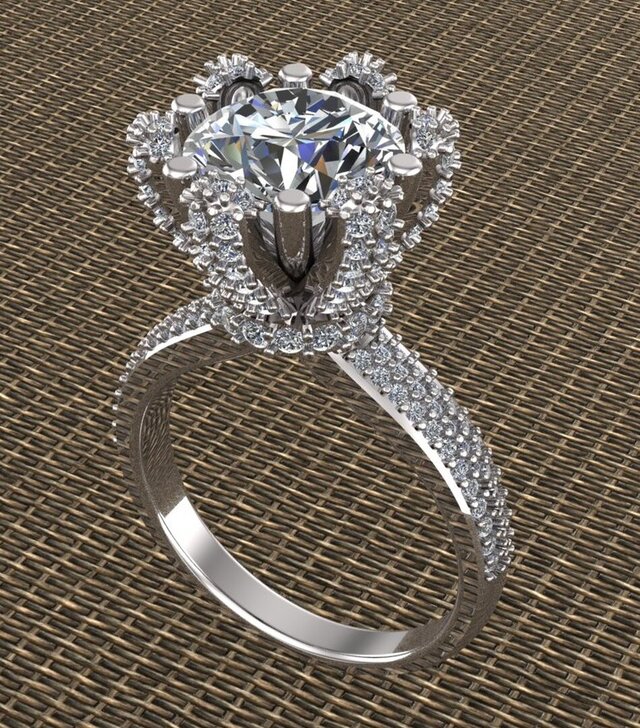 This is a luxury round diamond halo engagement ring designed in 3D CAD.