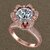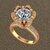 The ring features a large round center diamond with a beautiful floral halo setting surrounded by small diamonds.