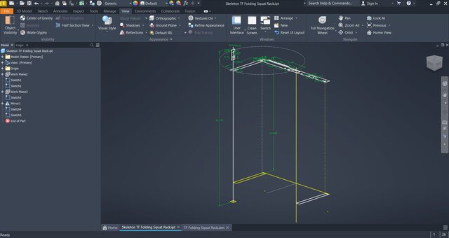 The Folding Squat Rack is a space-saving strength training solution, developed using the Skeleton Design methodology in Autodesk Inventor. This approach utilizes multiple base sketches distributed across different planes within a master part file, serving as the foundational geometry for all components and sub-assemblies throughout the model. Designed for home gyms with space constraints, this rack folds flat against the wall when not in use, maximizing available workout area. The parametric workflow ensures design consistency, facilitates modifications, and maintains precise relationships between all structural elements. Features robust construction with adjustable safety bars and secure mounting system for stability during squats, bench presses, and other compound exercises. Ideal for individuals seeking professional-grade strength training equipment that adapts to limited spaces without compromising safety or functionality.