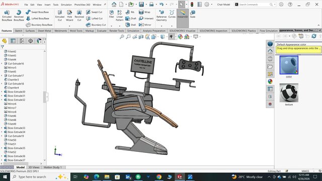 I recently designed this detailed dental chair assembly using SOLIDWORKS for a client who required a 3D-print-ready model with clean geometry and functional detailing.