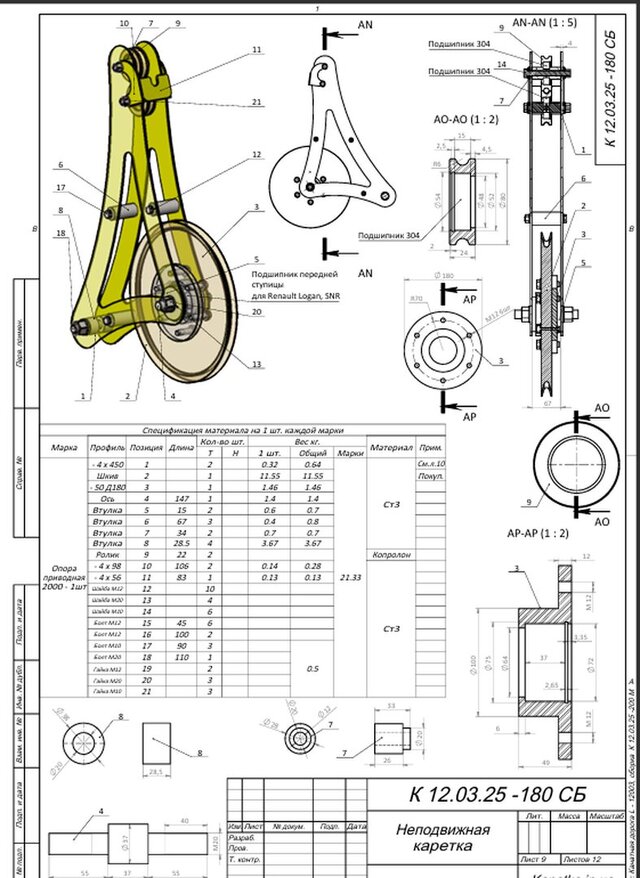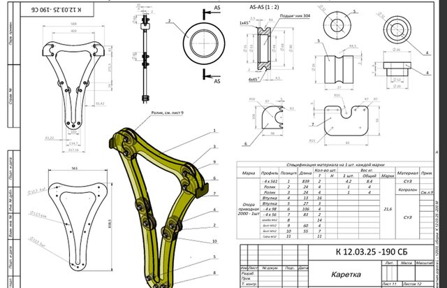 Manufacturing Package: Complete technical documentation (BOM, 2D drawings) with optimized material selection (St3, Caprolon) and safety factor verification.