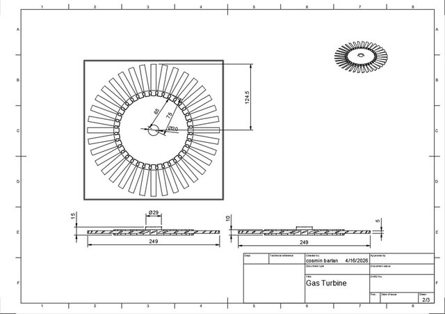 This project was created in Fusion 360 and presents a simplified model of a gas turbine. Within the project, I contributed by designing the turbine blades, highlighting their role in converting gas energy into mechanical energy through the expansion process.