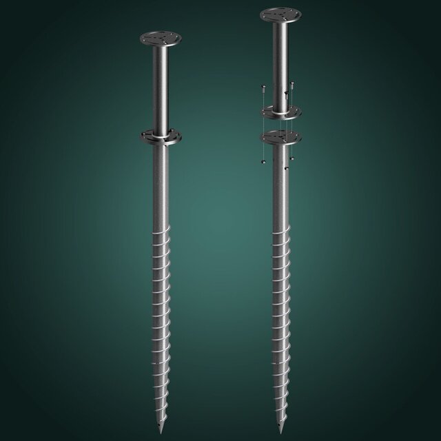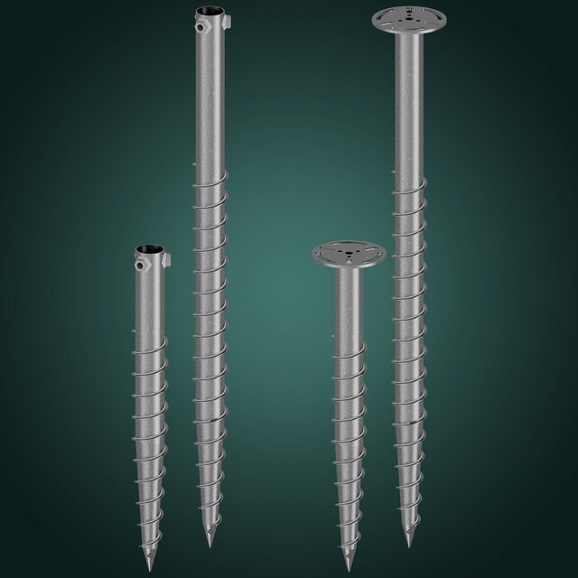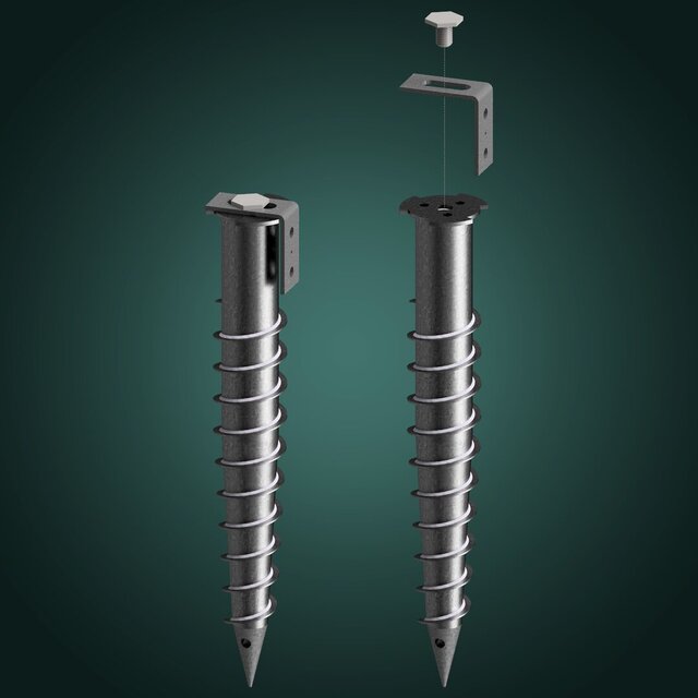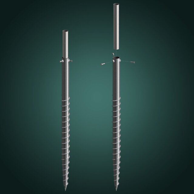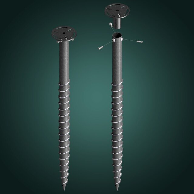 Ground Screws with interchangeable mounting systems, developed using Autodesk Inventor. This foundation solution features a helical screw design for secure ground anchoring without concrete. The design includes versatile top mounting options: circular flange plates, U-brackets for posts, and tube extensions for custom applications. The parametric workflow ensures design consistency and precise relationships between helical flights, central tube, and mounting components. Essential for fast, eco-friendly installation, these ground screws eliminate concrete pouring while providing superior holding strength and easy removal. Ideal for fencing, signage, solar panels, deck foundations, and outdoor structures requiring reliable anchoring solutions.