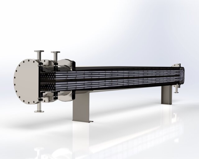 Designed a heat exchanger with a colleague for a local brewery. They requested that the heat exchanger should have a high volume capacity so that they could use the same heat exchanger when they increase output volume. 30 tubes, 23 passes. Ethylene Glycol or chilled distilled water as working fluid.