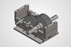 This is a 3D CAD model of a helical gear shaft assembly. The design features two parallel shafts, each equipped with helical gears for smooth and efficient power transmission. The assembly is supported by a robust base and precision blocks, which provide alignment and stability for the rotating shafts. The helical gears are designed to reduce noise and vibration while transmitting torque between shafts at a specific angle. This configuration is commonly used in mechanical power transmission systems, gearboxes, and industrial machinery.