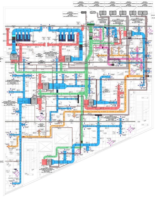 I developed complete HVAC shop drawings, performed VRV (Variable Refrigerant Volume) system calculations, and managed MEP coordination using Autodesk Revit.