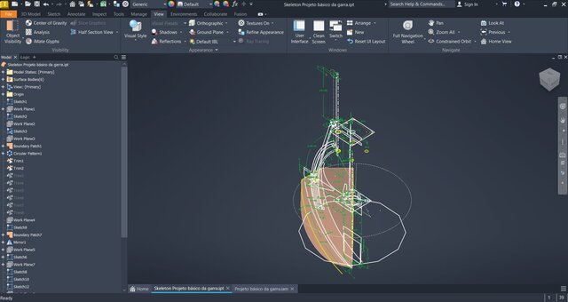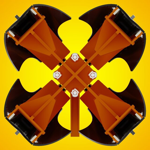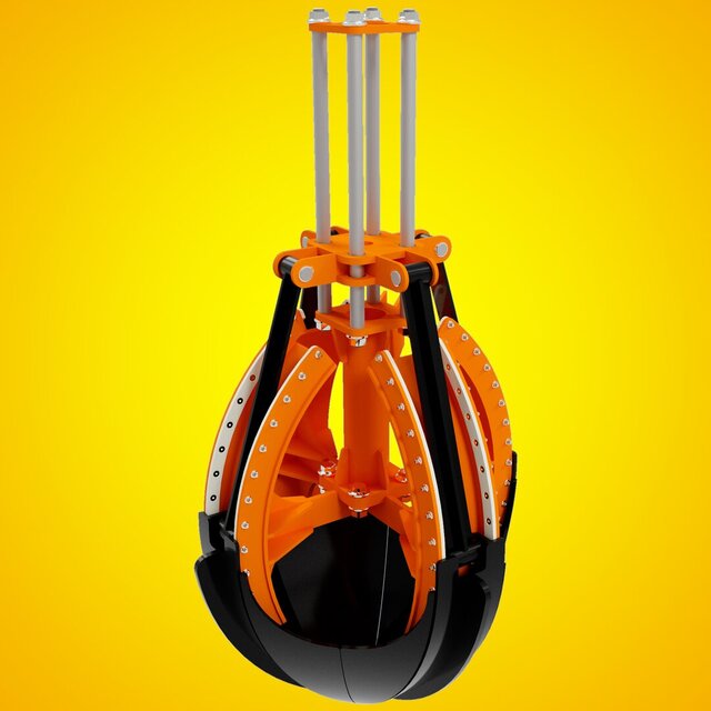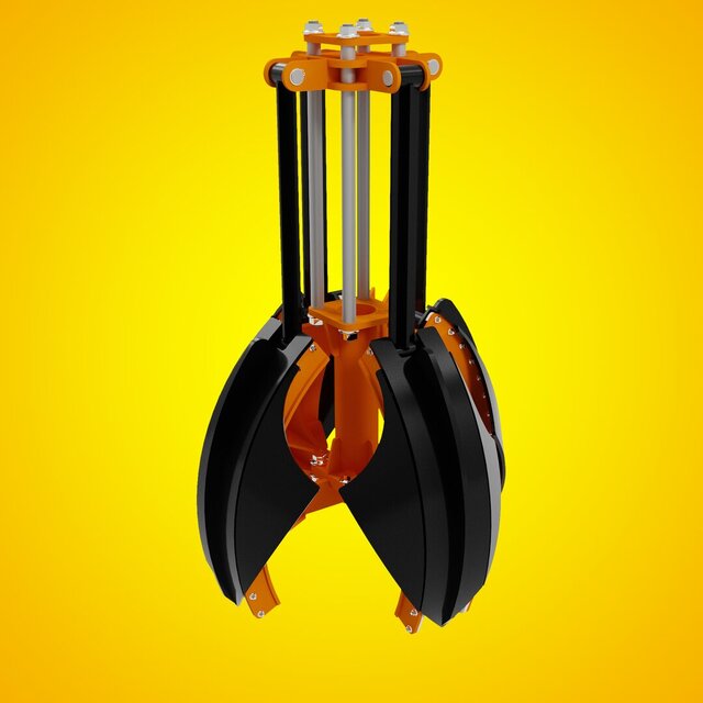 The Hydraulic Four-Spade Claw is a digging mechanism designed to create semi-spherical holes in soil, developed using the Skeleton Design methodology in Autodesk Inventor. This approach utilizes multiple base sketches distributed across different planes within a master part file, serving as the foundational geometry for all components and sub-assemblies throughout the model. The mechanism consists of four curved blades symmetrically arranged around a central axis and linked to a pneumatic cylinder. When actuated, the cylinder drives the blades outward in a coordinated motion, allowing them to penetrate and displace earth evenly. As the blades open, they carve a rounded cavity with near hemispherical shape. This design is ideal for planting, anchoring, or soil sampling applications requiring uniform hole geometry and efficient operation. The parametric workflow ensures design consistency and facilitates modifications across all structural elements.